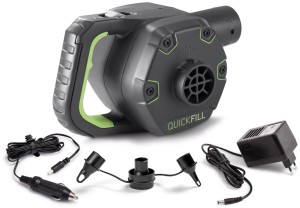 Nowoczesna i bardzo funkcjonalna pompka elektryczna z serii Quick-Fill została wyposażona w akumulator dużej pojemności, który można ładować zarówno z gniazdka elektrycznego 230 V jak i poprzez gniazdo zapalniczki samochodowej 12V. Czyni to pompkę bardzo uniwersalną, gdyż można ją bez problemu ładować w domu jak i podczas samochodowej wycieczki na biwak.