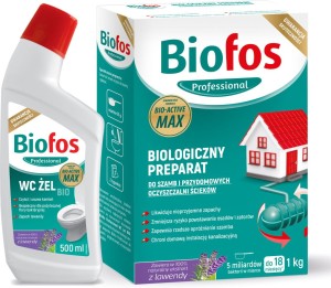 Preparat do szamb i oczyszczalni ścieków proszek 1kg + żel do WC Biofos