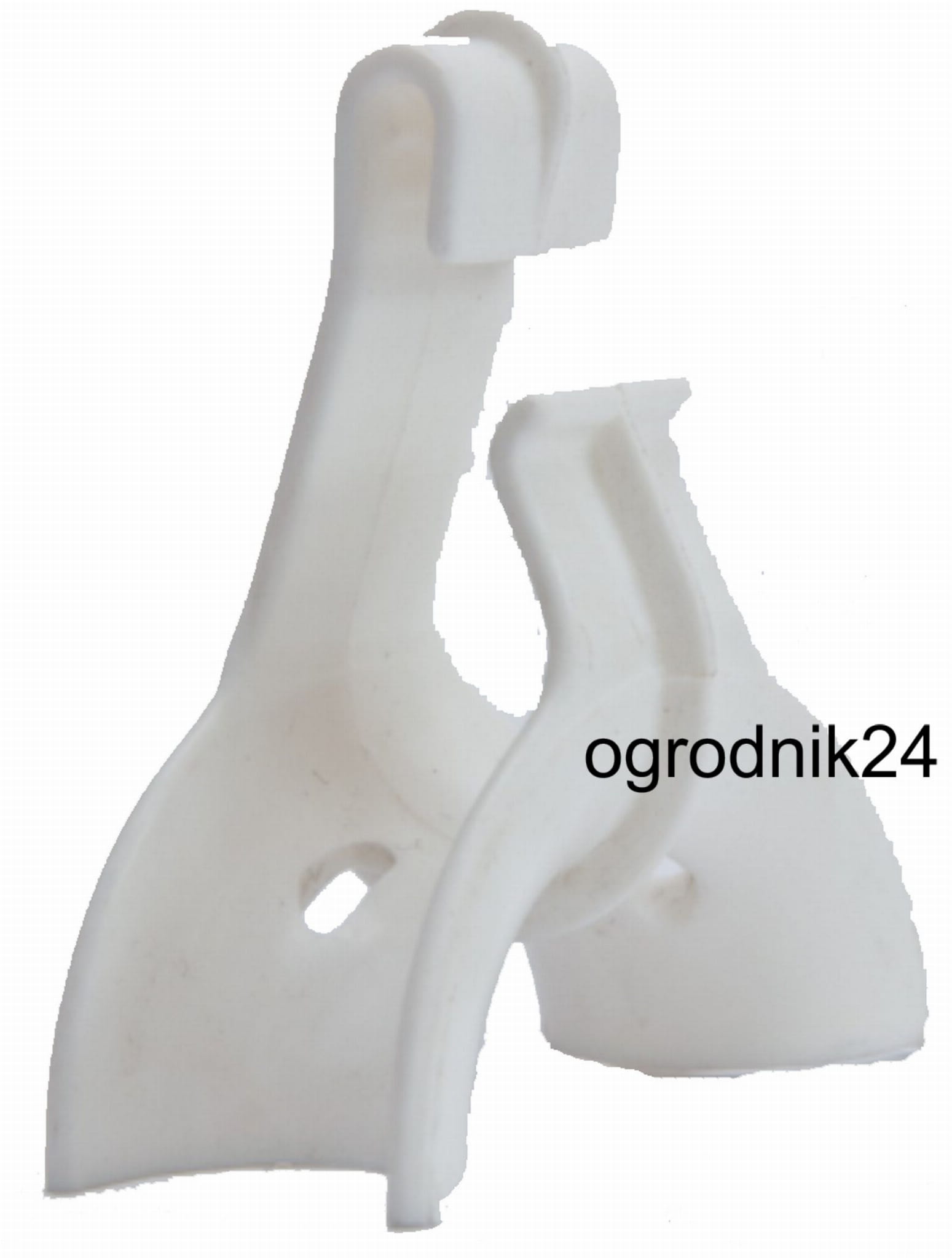 Produkt stosowany do przewieszania pędu ogórka. Wygładzony od wewnętrznej strony przez co nie rani rośliny. Przewieszka posiada przewietrzenie zapewniające lepszą cyrkulację powietrza u styku pędu.