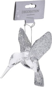 Ozdoba jest przezroczysta z elementami srebrno-brokatowymi.