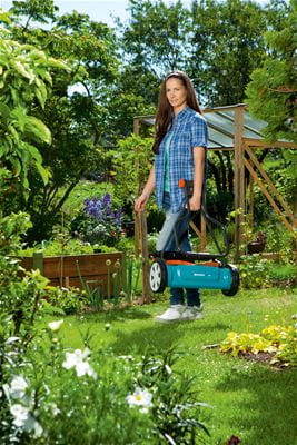 GARDENA ręczna kosiarka bębnowa 400 jest przyjazna dla środowiska i nie potrzebuje prądu. Zasada jej działania jest prosta: podczas pchania nóż bębnowy i nóż dolny poruszają się bez dotykania się. Podobnie jak podczas cięcia za pomocą nożyczek, źdźbło trawy jest podnoszone i ścinane. Funkcja specjalna: nóż bębnowy i nóż dolny nie dotykają się, dzięki czemu kosiarka jest bardzo cicha i lekka podczas pchania. Hartowany, pokryty powłoką antyadhezyjną, wykonany z wysokiej jakości stali nóż bębnowy oraz szlifowany nóż dolny gwarantują czyste i dokładne cięcie, zapewniając doskonałą pielęgnację trawnika. Duże koła o specjalnym bieżniku ułatwiają przemieszczanie i manewrowanie oraz zapewniają dobrą przyczepność. Ręczny regulator umożliwia wygodne i proste ustawianie wysokości cięcia, którą można odczytywać na dobrze widocznej skali. Uchwyt można wygodnie odłączyć, co ułatwia przechowywanie i transportowanie urządzenia.