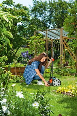 VDuże koła ułatwiają manewrowanie i zapewniają dobrą przyczepność na trawniku.