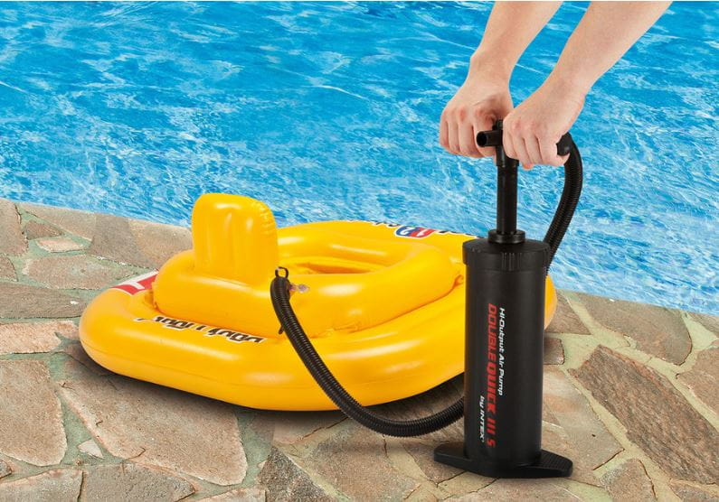 Pompka tłokowa Intex umożliwia podwójną wydajność dzięki dzięki pompowaniu w czasie opuszczania tłoka jak i podnoszenia.