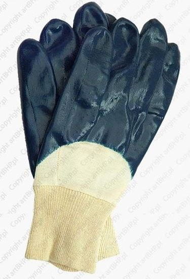 Rękawice ochronne powlekane nitrylem, zakończone dzianinowym ściągaczem.