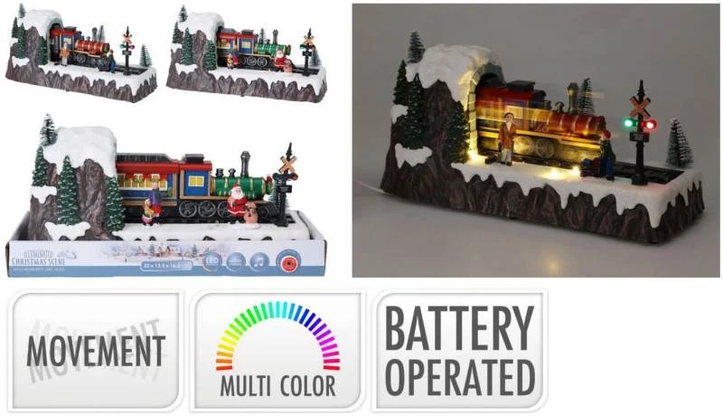 Scenka świąteczna led z pociągiem 32 cm 049801