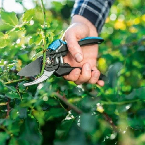 - ergonomiczny, jednoręczny sekator nożycowy z regulacją, która pozwala na dopasowanie rozwarcia do średnicy gałęzi jak i do dłoni użytkownika