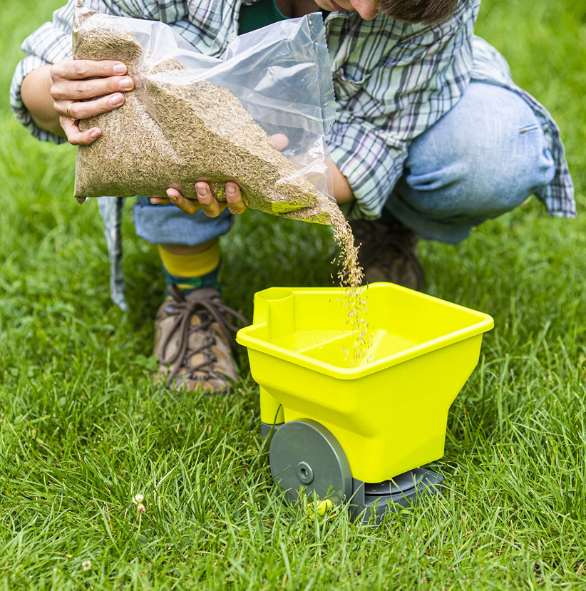 Narzędzie posiada blokadę wysiewu oraz 4-stopniowy regulator ilości wysiewanego materiału. Dzięki temu nie przesadzisz np.: z rozsiewanym nawozem co grozić może np.: wypaleniem nawożonej trawy.