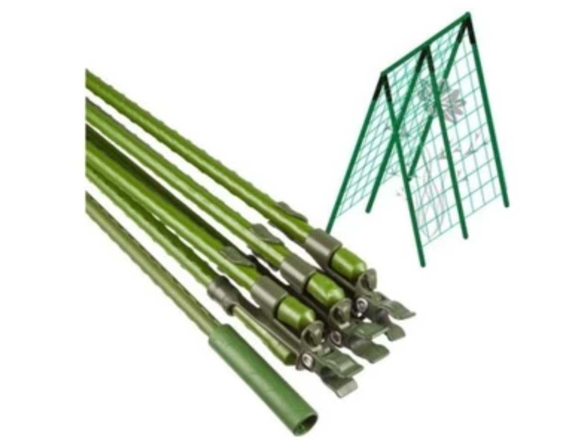 Uniwersalny zestaw przeznaczony do podtrzymywania pnących warzyw i kwiatów. Komplet tyczek oraz łączników pozwala zbudować podporę, dostosowaną do wymogów różnego rodzaju roślin. Dołączona siatka umożliwia pięcie się krzewów w górę konstrukcji. Stelaż jest regulowany. Dołączona siatka ma wymiar 3,2x2 m. Oczka siatki 10x10 cm