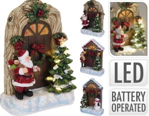 Scenka z oświetleniem LED-owym, która przedstawia Mikołaja, Elfa bądź Bałwanka w duecie z choinką przy drzwiach. Doskonale wpisuje się w okres zimy i świąt Bożego Narodzenia. Tworzy we wnętrzu magiczną i piękną atmosferę. Dostępna w trzech wersjach widocznych na zdjęciu.