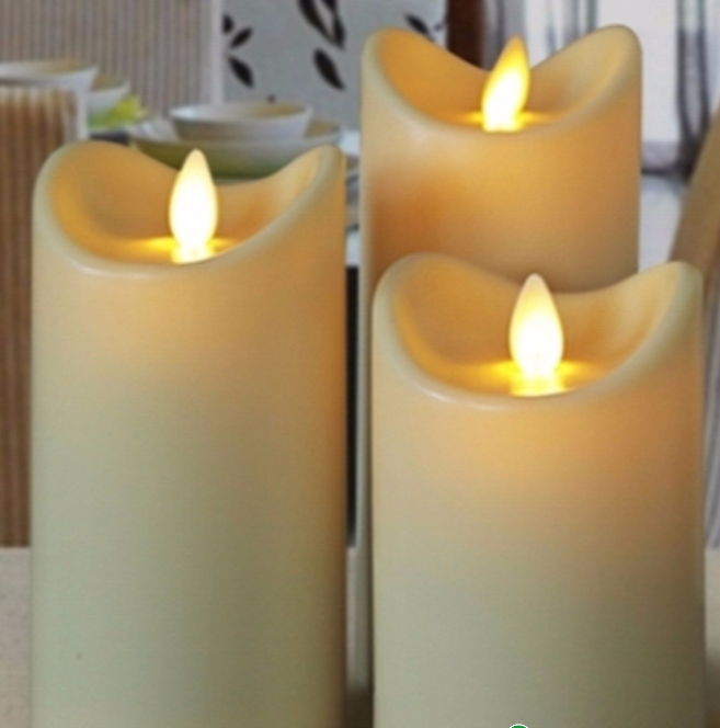 Świeca wykonana z wosku z niewidocznym mechanizmem i żarówką LED.