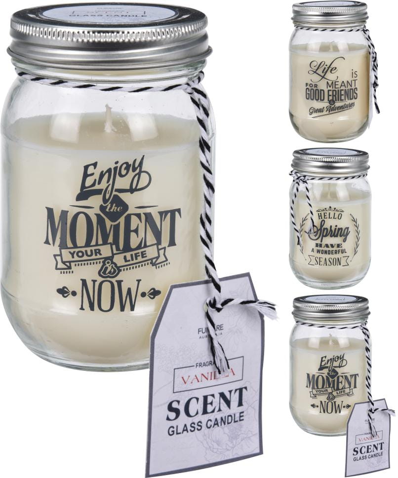 Nowoczesna świeczka w słoiku o pięknym zapachu wanilii.