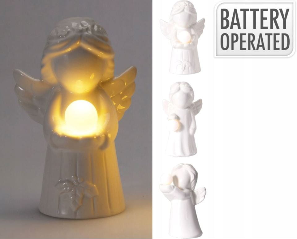 Świecący Aniołek LED na baterie – Biały, ceramiczny