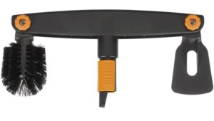 Innowacyjna szczotka do rynien Fiskars QuikFit umożliwia czyszczenie trudno dostępnych miejsc bez użycia drabiny, prosto z ziemi. Głowica, dzięki regulowanemu kątowi nachylenia szczotki i skrobaka, sprawia, że usuwanie liści czy innych zanieczyszczeń z rynien nie sprawia problemu. Teleskopowy trzonek, dedykowany do tej głowicy, ułatwia pracę nawet do sześciu metrów wysokości.