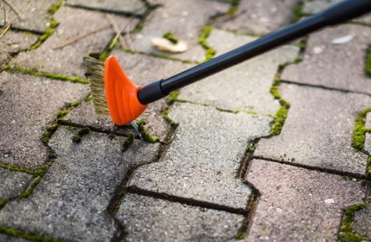 - szczotkę druciana do usuwania mchu i trawy z fug kostki brukowej,