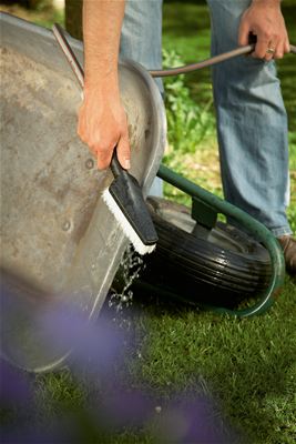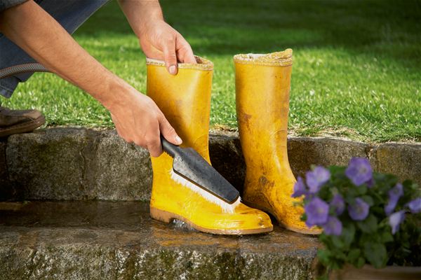 Dzięki elastycznemu, płaskiemu korpusowi szczotka umożliwia dotarcie nawet do najwęższych miejsc na narzędziach ogrodowych, kaloszach, koszach na śmieci itd.