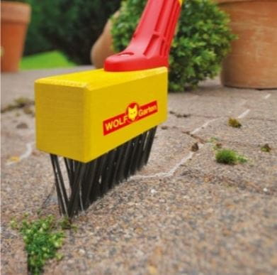 Stalowa szczecina zapewnia szybkie i łatwe usunięci mchu czy trawy z szczelin chodnika, podjazdu czy tarasu.