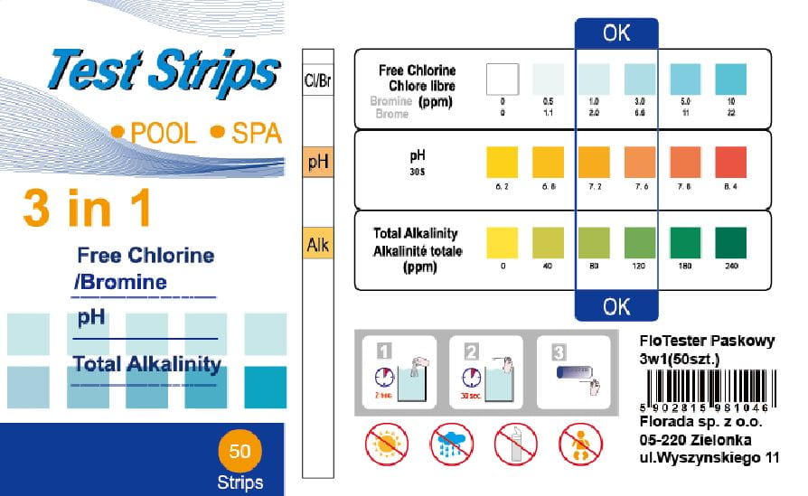 - Doskonałe narzędzie do podstawowych badań wody w basenach i spa