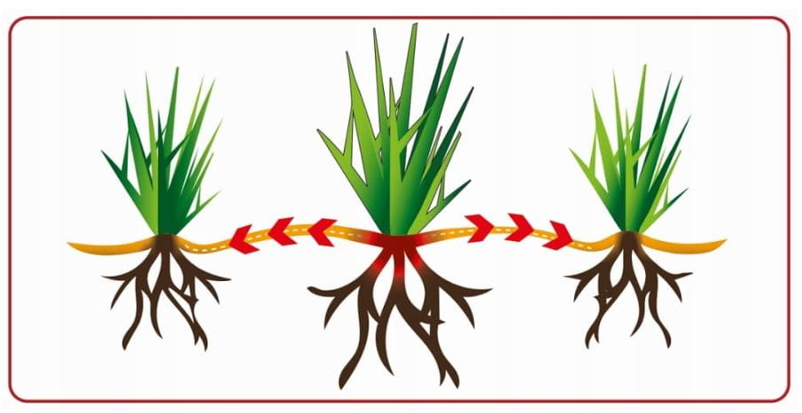 Tworzy zwartą, naturalną sieć samodzielnie rozrastających się na boki kłączy z których wyrastają nowe kępy trawy. W dalszym etapie każda nowo powstała kępa dalej wypuszcza w bok kłącza i następuje wzrost kolejnych kęp. W ten sposób następuje proces samo zagęszczania. Dzięki temu trawa szybko zadarnia wolne powierzchnie i ubytki, a w rezultacie intensywnego i bujnego wzrostu otrzymujemy gęsty trawnik na lata, zarówno w przypadku zakładania trawnika jak i renowacji trawnika.