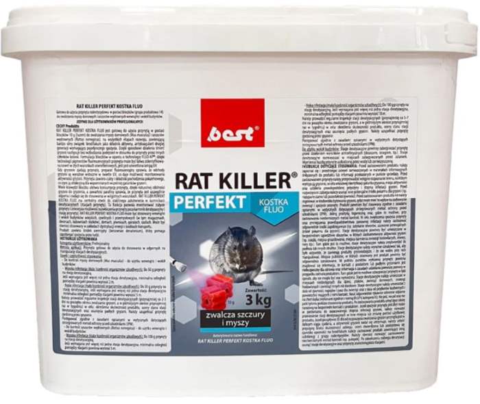 Trutka Trucizna na Myszy Rat Killer Perfekt Kostka Fluo 3 kg Best-Pest