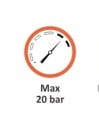 Ciśnienie maksymalne: 20 bar, pracuje nawet przy wysokim ciśnieniu.