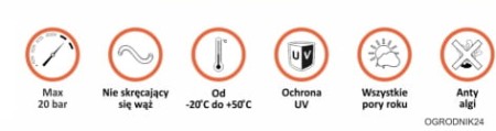 Zapobiega osadzaniu się glonów wewnątrz węża, nie zapycha się i nie pleśnieje.