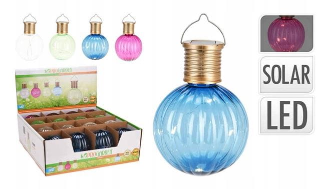Żarówka solarna do powieszenia z drucikiem LED w środku.