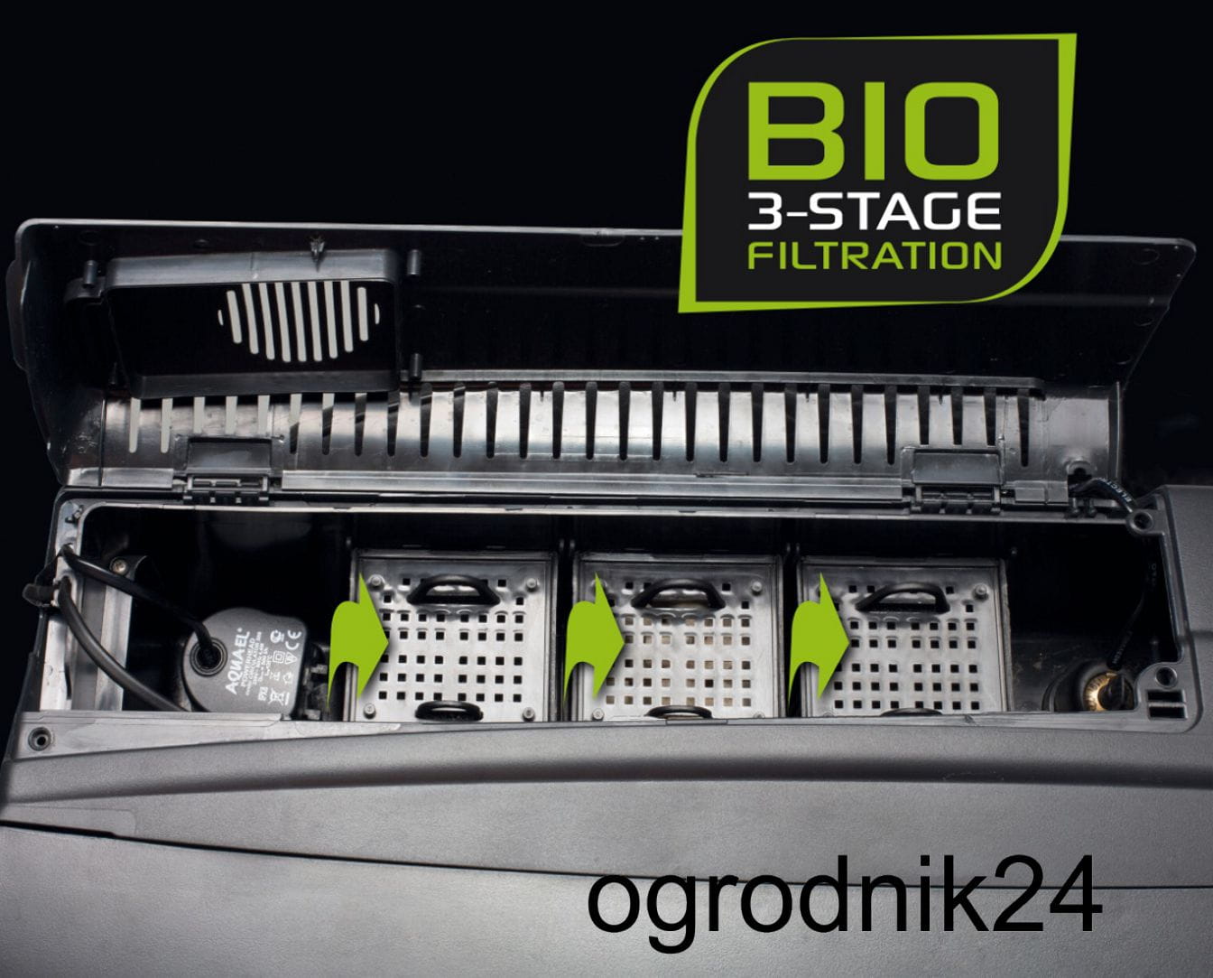 • posiada wydajny mechaniczno-biologiczny filtr przepływowy zainstalowany w pokrywie (brak konieczności instalowania filtra wewnątrz akwarium)