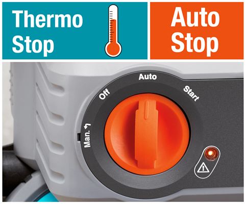 Pompa wyłącza się samoczynnie w przypadku, gdy niemożliwy jest dalszy pobór wody, np. ze studni czy cysterny. Funkcja automatycznego wyłączania się zapobiega przegrzaniu się i uszkodzeniu pompy.