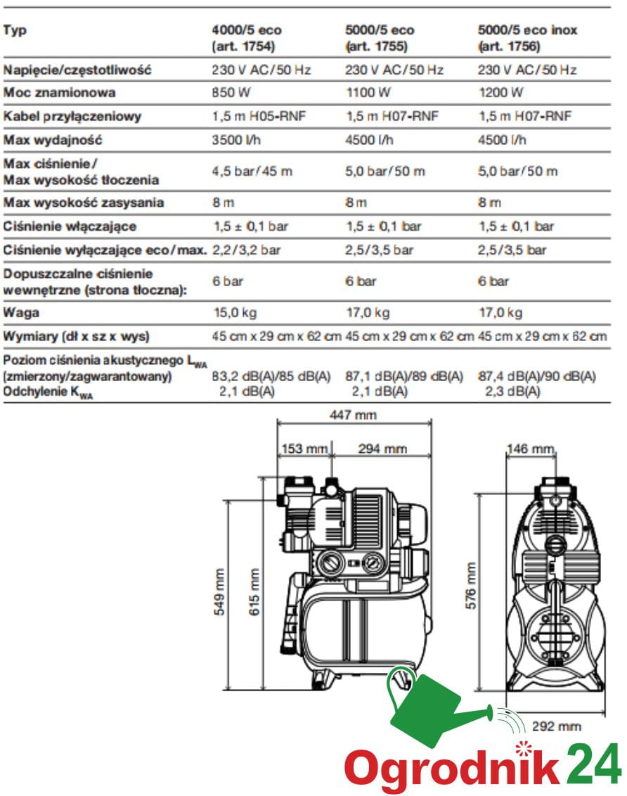 Zestaw hydroforowy 4000/5 eco hydrofor GARDENA 1754