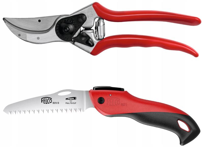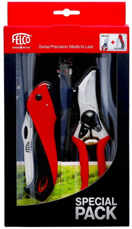 Zestaw składa się z klasycznego sekatora jednoręcznego Felco 2 oraz piły składanej Felco 601. Sekator Felco 2 to profesjonalny sekator nożycowy, idealny dla osób praworęcznych o dużych dłoniach do cięcia gałęzi o średnicy do 25 mm. Wyposażony jest w specjalne wyżłobienie do przecinania drutów i części zamienne. Piła składana Felco 601 umożliwia cięcie grubszych gałęzi do 600 mm średnicy, posiada zęby zoptymalizowane do odprowadzania wiórów, oraz chromowane ostrze dla zmniejszenia tarcia i zwiększenia trwałości. Piła jest odpowiednia zarówno dla użytkowników prawo-, jak i leworęcznych.
