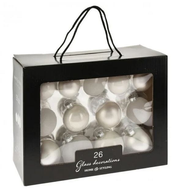 W skład zestawu wchodzi 26 szt bombek o wymiarach: