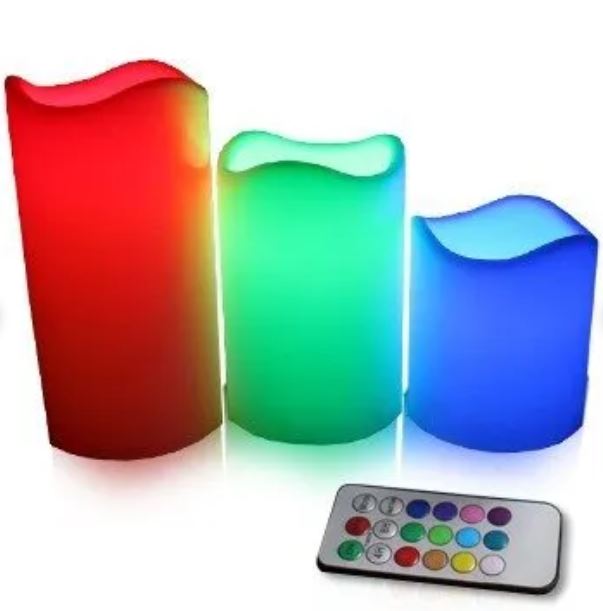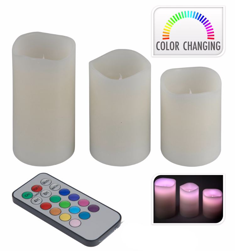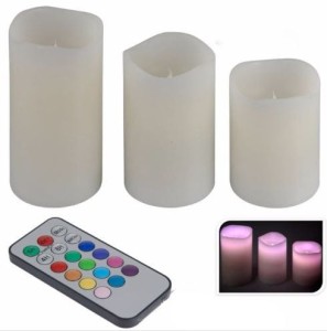 Zestaw woskowych świec 3szt z pilotem 12 kolorów 406361