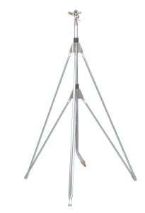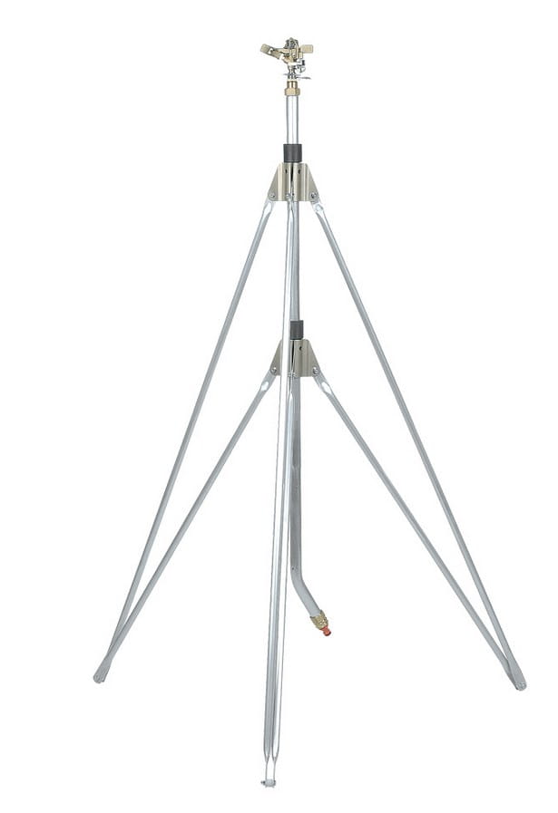 Zraszacz pulsacyjny na statywie z głowicą mosiądz o zwiększonym zasięgu na trójnożnym statywie.